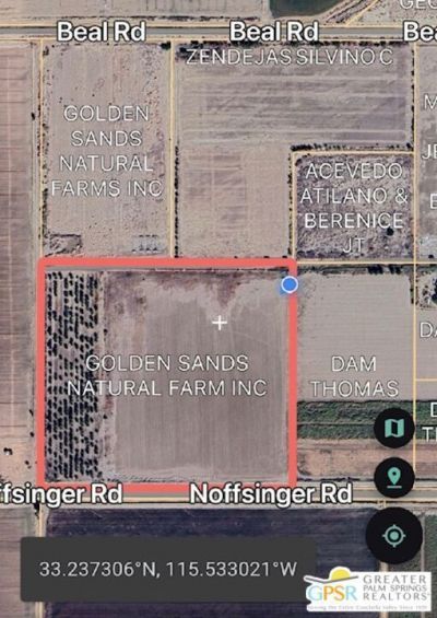 60 acres of prime agricultural land in The Imperial Valley. Located very near to The Salton Sea. Two adjacent APN numbers 021-020-002-000 (20 acres) and 021-020-008-008 (40 acres) being sold together for a total of 60 acres. An excellent opportunity for farming, or investment. This property benefits from year-round sunshine and access to irrigation. Flat terrain and open space provide flexibility for agricultural operations or potential development. Convenient access to Highway 111 and nearby services. Geothermal overlay zone subject to CPUC.