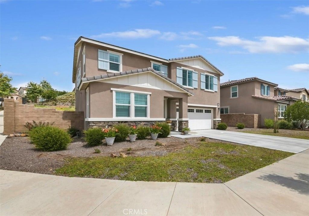 Welcome home to this corner-lot residence in Horizons at Terramor, ideally situated on a quiet cul-de-sac and offering sweeping views of the Temescal Valley. This home features paid-off solar and is located within a highly desirable guard-gated neighborhood, combining privacy, security, and resort-style living. Designed with comfort and functionality in mind, the popular Tourmaline floor plan showcases a bright open-concept layout perfect for modern living. The kitchen is the centerpiece of the home, featuring a spacious island, ample cabinetry, and seamless flow into the great room?ideal for entertaining. A downstairs bedroom and full bathroom provide flexibility for guests. Upstairs, youll find three additional bedrooms, a generous loft/bonus room, and a convenient laundry room. The loft is open and airy, filled with natural light and offering a comfortable, versatile space. Plantation shutters throughout, recessed lighting, and thoughtful upgrades enhance both style and comfort. Step outside to your private backyard retreat, complete with a covered stucco patio?perfect for relaxing and enjoying the peaceful surroundings. Additional highlights include a two-car garage with direct access and well-designed living spaces throughout. Living in Terramor means enjoying a true resort lifestyle, with access to scenic walking trails, two private clubhouses, fitness center, wellness studio, yoga classes, indoor pool, resort-style outdoor pool and spa, tennis and pickleball courts, bocce ball, a pavilion bar, dog parks, playgrounds, and outdoor gathering spaces. Conveniently located near the 15 freeway, shopping, and dining, this turnkey home offers the perfect blend of luxury, comfort, and everyday convenience. Schedule your private showing today.