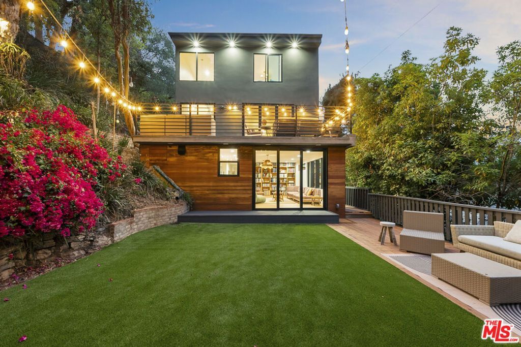 Welcome to 12220 Benmore Terrace, an artfully updated mid-century home situated north of Sunset at the end of a long private driveway, behind gates in the lush hills of Brentwood Heights. Designed by the acclaimed architect A. Quincy Jones, this residence embodies elegance and sophistication. Spanning 4,000 sq ft, the home offers six spacious bedrooms and five luxurious bathrooms, all newly renovated with designer finishes throughout. High-end amenities, such as a La Cornue range and Sub-Zero refrigerator, enhance the gourmet kitchen, which flows into the beautifully appointed living room with accordion doors that open to a sun-drenched patio. The primary suite features a gorgeous spa bath adorned with European tiles and fixtures. A large second bedroom with its own bath and a third en-suite bedroom complete the upper level. Downstairs, you'll find a separate three-bedroom, two-bath wing with its own family room and kitchenette, opening to the verdant yard and deck, surrounded by mature, lush gardens. The property can be delivered furnished or partially furnished. Parking for 4 cars comes with an electric car charger, while solar panels provide ample power to dramatically reduce the electric bill. Nestled on a sprawling quarter-acre lot, this secluded oasis presents a unique opportunity for someone seeking complete privacy and tranquility in a convenient Brentwood location, just minutes from schools, shops, and restaurants.