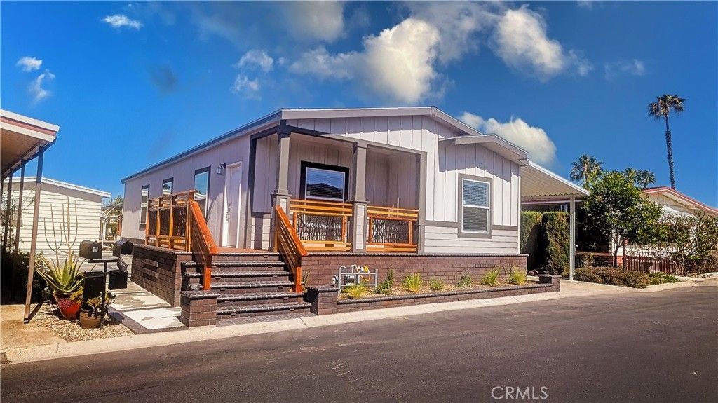 WOW GORGEOUS INSIDE AND OUTSIDE!! Step into this, BRAND NEW 2026 Manufactured Home it Featuring 3 bedrooms, 2 baths a dining area and a separate laundry room with an Open Floor Concept. This Home its Located in a Senior COMMUNITY IN ORANGE COUNTY. Perfect Located close from Disneyland, Angel Stadium, Yorba Regional Park, Horse Trails nearby, but not a touristy area still very peaceful and quiet! Once inside, youre greeted by 9-foot ceilings, a skylight that fills the home with natural light, recessed lighting in living room and kitchen, ceiling fans and Central Heating and Air conditioning that keeps you comfortable year-round. Kitchen featuring luxurious quartz countertops, a Gorgeous Island, a Walk-in Pantry and Top-of-the-Line Stainless Steel Appliances (stove, refrigerator, microwave, and dishwasher). The kitchen flows into the dining area and spacious living room perfect for entertaining. Both bathrooms are finished with matching quartz countertops, light mirror and walk-in tile master bath. Large size master bedroom with walk-in closet a direct access to a stunning rear porch perfect for enjoying your morning coffee or just to step out for some fresh air. A Cover carport for multiple cars, a beautifully brick steps with light welcome you to the entrance porch. The curb appeal here truly stands out. The home is just as gorgeous outside as it is inside everywhere you look you'll be amaze. This home is located in Sunkist Gardens, a beautifully kept community with a pool, spa, clubhouse, and fun resident activities that create a vibrant and welcoming lifestyle. MUST SEE!!