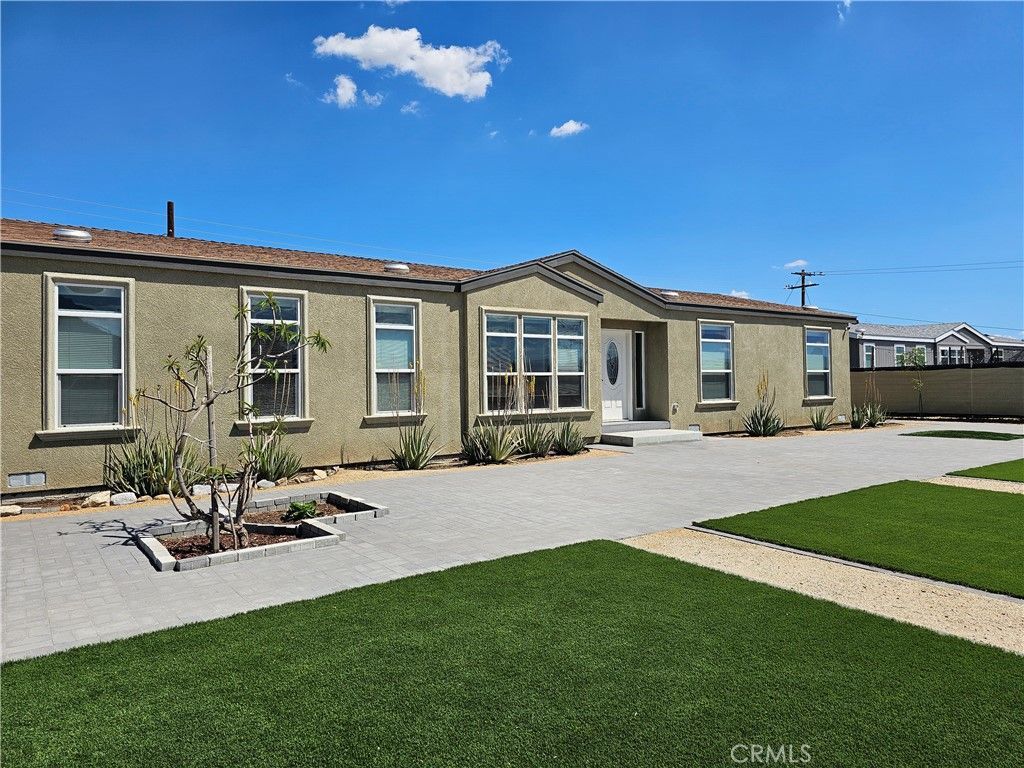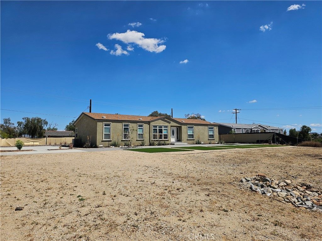 Beautiful ranch-style manufactured home on a permanent foundation with 433 filings built in 2021, 4 bedrooms, two bathrooms, approximately 1,980 square feet. Family Rooms, Open Concept Kitchen, and the Main Bathroom offer dual sinks, a walk-in shower, and a jacuzzi tub. A Separate Laundry Room. Central air/heating. This great turnkey home is on a large lot and offers many updates, including static grasses, a newer concrete Paver, and more. Close to the 215 freeway and 15 Freeway. The property has many benefits. Schedule your showing today!