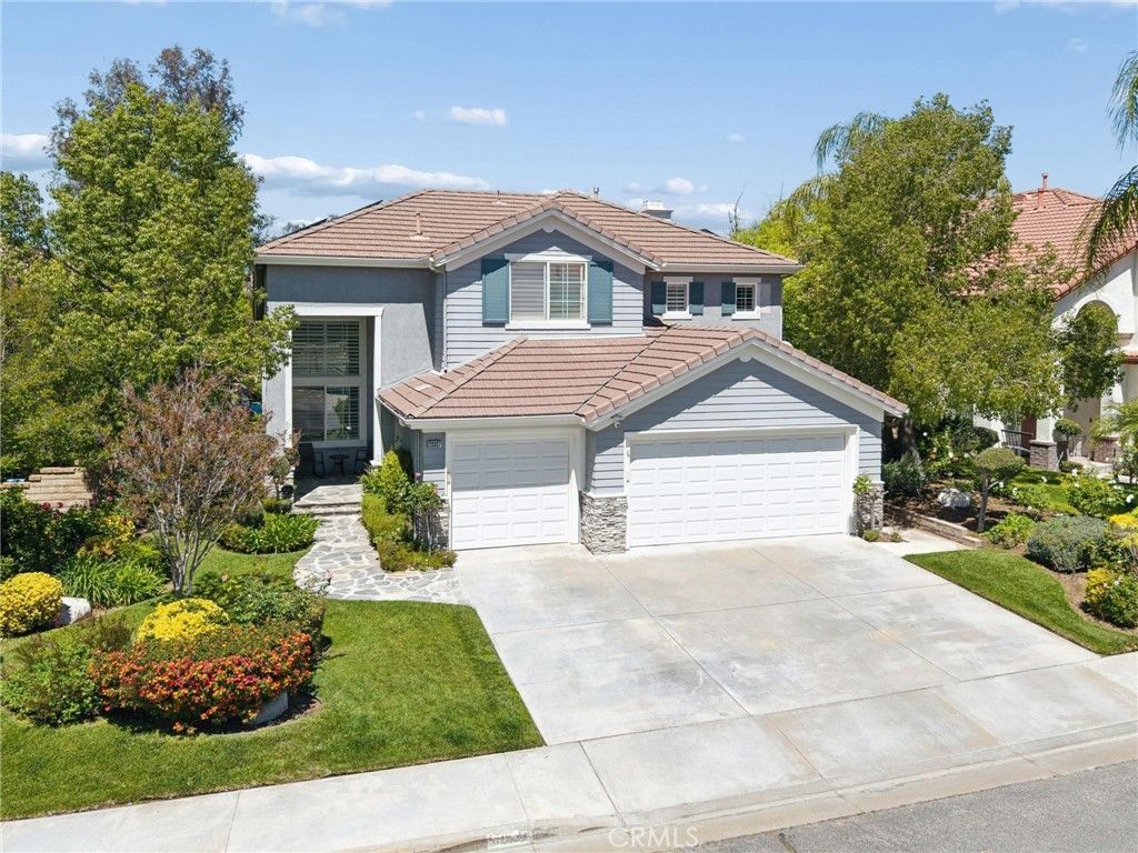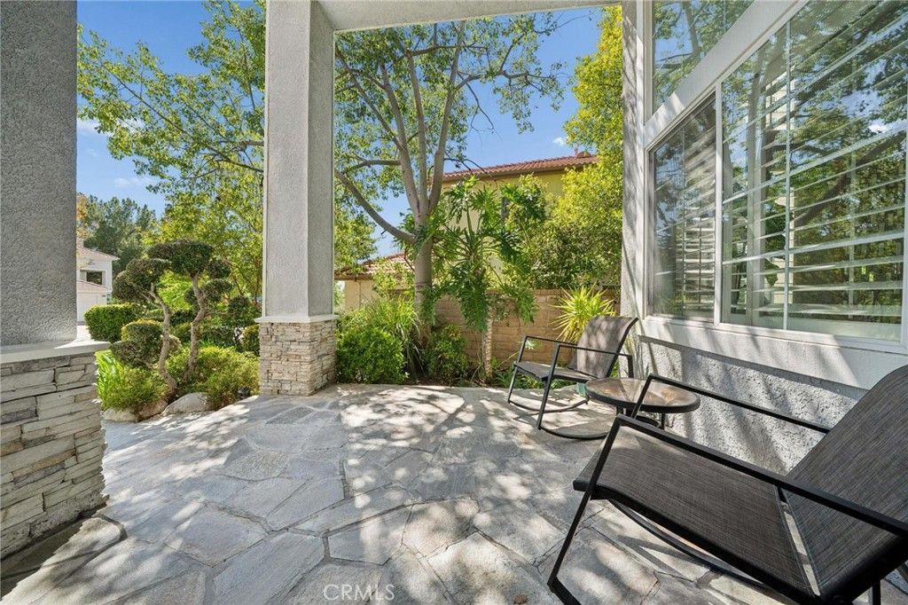 Welcome to one of the most sought-after neighborhoods in Valencia. Ideally situated on a cul-de-sac within the desirable Northpark community, this beautifully upgraded home offers the perfect blend of comfort, style, and functionality, and includes OWNED SOLAR for added efficiency and long-term savings. Newer waterproof laminate flooring flows seamlessly throughout, creating a clean, modern foundation. The upgraded kitchen features custom cabinetry, newer quartz countertops, and a full-height quartz backsplash, delivering a sleek and cohesive design. Plantation shutters add timeless appeal, while a newer wrought iron staircase creates a striking architectural focal point. A custom barn door enhances the downstairs office, offering both style and versatility. The main level also includes a full bathroom with granite countertops, tile flooring, and a walk-in shower, along with a convenient laundry room complete with a utility sink. Upstairs, the spacious primary suite features a private balcony overlooking the backyard with gorgeous views and a relaxing retreat area. The remodeled primary bathroom showcases custom cabinetry, a large walk-in shower, and a soaking tub. The walk-in closet is outfitted with custom built-ins for optimal organization. Two additional bedrooms and a shared bathroom complete the upper level. The backyard is designed for both entertaining and low-maintenance living, featuring a covered patio, turf landscaping, a built-in BBQ, and mature fruit trees, including apple and lemon. A spacious three-car garage completes this exceptional home. NO MELLO ROOS and low HOA which features tennis courts, multiple pools and spas, clubhouse, basketball, outdoor BBQ and more!