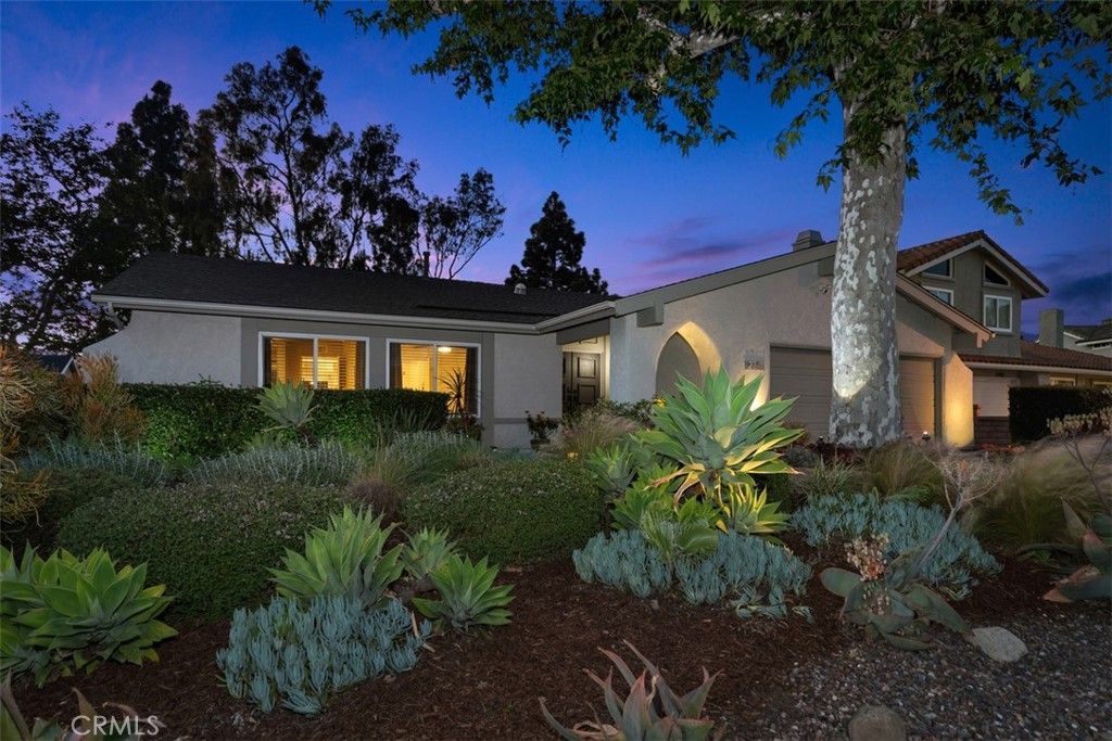 Welcome to this beautifully remodeled, sprawling single-story home, ideally situated on a rare elevated cul-de-sac of just 10 former model homes?steps from the scenic Oso Creek Trail, one of Mission Viejos most beloved walking paths. From the moment you arrive, the location speaks for itself. Offered for the first time in 56 years, this exceptional residence showcases true pride of ownership and thoughtful upgrades throughout. The home features 3 bedrooms plus an attached 250 sq ft bonus room with a private entrance?perfect for a guest suite, home office, game room, or potential fourth bedroom. Inside, an open and airy floorplan is filled with natural light from new dual-pane windows and sliding doors. The spacious living room boasts vaulted ceilings, recessed lighting, and newly installed luxury vinyl flooring. The fully remodeled kitchen is the heart of the home, featuring quartz countertops, stainless steel appliances, abundant cabinetry, and a large center island with bar seating?ideal for both everyday living and entertaining. It flows seamlessly into a generous dining/family room complete with a cozy fireplace and recessed lighting. The primary suite offers peaceful backyard views, direct outdoor access, ample closet space, and a ceiling fan for added comfort. Secondary bedrooms are bright and inviting, with charming front yard views and ceiling fans. Step outside to your own private retreat?an expansive backyard designed for relaxation and entertaining. Enjoy a full-width covered patio for shaded gatherings, a cobblestone seating area, and beautifully designed drought-tolerant landscaping. Additional highlights include a full home re-pipe, whole-house water filtration system, new water heater, newer HVAC system, updated bathrooms, Ring security system, and a finished garage with workbench, sink, and ventilation system. Ideally located near top-rated schools, parks, and dining, with exclusive access to Lake Mission Viejo amenities including boating, fishing, concerts, and community events. No HOA and no Mello-Roos. Come experience the lifestyle this exceptional home has to offer!