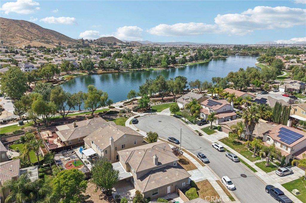 LOCATION, LOCATION, LOCATION!!! Don't miss out on this amazingly rare opportunity in the highly sought-after community of Heritage Lake! Ideally situated on a quiet cul-de-sac with only TWO HOMES between you and the 25-acre private lake and its scenic walking trails, this beautifully designed Craftsman-style home offers the perfect blend of comfort, functionality, and lifestyle. Step inside to an incredibly functional floor plan featuring a separate Living Room and a spacious Family Room that flows seamlessly into the kitchen and dining area...ideal for both everyday living and entertaining. The Family Room showcases a raised hearth stone fireplace and media niche, creating a warm and inviting gathering space. The upgraded kitchen opens directly to the Family Room and features rich cabinetry with oil-rubbed bronze hardware, stainless steel appliances, granite countertops, and handsome maple wood flooring. Upstairs, the expansive Primary Suite offers a huge walk-in closet and a beautifully upgraded bath with dual vanities, a soaking tub, and a separate tiled shower. A convenient upstairs laundry room with additional cabinetry makes daily living that much easier. Step outside to a private, pool-sized backyard designed for relaxation and entertaining, complete with a large Alumawood patio cover with dual fans/lights, stamped and colored concrete, and a custom stone fire pit with built-in seating. Custom concrete curbing adds a clean, finished touch and makes future landscaping a breeze. The oversized tandem 3-car garage provides ample space for parking, storage, or a home gym setup. Living in Heritage Lake means enjoying resort-style amenities, including a private 25-acre lake for pedal boating and catch-and-release fishing, miles of scenic trails, clubhouse events, two pools, a splash pad, and multiple playgrounds/tot-lots. The community also benefits from City of Menifee amenities located within the neighborhood, such as several sports courts?including pickleball, tennis, basketball, and soccer. Conveniently located near schools, shopping, dining, and with easy access to the 215 freeway. Dont miss your chance to own in one of the areas most desirable communities?come experience the Heritage Lake lifestyle for yourself!