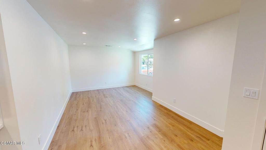 This beautiful 2+2 ADU features newer vinyl floors, recessed lighting, dual pane windows, central heat and air, new floors, a living room, a large open kitchen area, new cabinets, quartz counters, stainless steel appliances, small laundry room washer & dryer included, hall bathroom featuring newer vanities, quartz counters, tile accents, one bathroom with soaking tub and the master bedroom with its private bath with newer vanity, quartz counter, and tile shower, good size second bedroom with closet. This unit has a private patio, central heat, and air. Washer, dryer & refrigerator included. Water & trash also included!