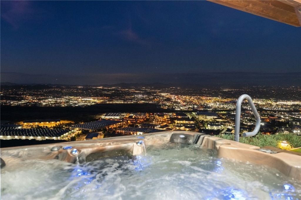 The best location in De Luz, Temecula.. Perfectly situated in a gated community, just five minutes from the freeway, shopping, and dining, while overlooking the entire Temecula Valley. This stunning residence is truly one of a kind. Thoughtfully designed as a two story home that lives like a single story, the primary suite is ideally located on the main level, featuring a spacious bedroom and luxurious bathroom retreat. From the moment you enter through the formal entry, you are welcomed by elegant living spaces including a formal living room, formal dining room, and an inviting family room. At the heart of the home is a chefs kitchen outfitted with premium Viking appliances, a generous layout, and an adjoining dining area perfect for both everyday living and entertaining. The home offers 4 bedrooms and 4.5 bathrooms, with three bedrooms featuring en suite full baths, and the fourth conveniently located near its own full bathroom. The lower level expands the homes versatility with an additional family room/bonus room and a flexible space that can be used as an office, game room, or even a potential casita kitchen setup. Spanning approximately 4,381 square feet, the home features a beautiful open floor plan filled with natural light and mesmerizing views from nearly every window. Additional highlights include paid off solar and an oversized 3 car garage. Step outside to your private backyard oasis, complete with low maintenance astro turf, a putting green, and lush, mature landscaping with a variety of fruit trees. The highly upgraded outdoor covered patio is designed for year round enjoyment, featuring an outdoor kitchen, pitched wood ceiling, ambient lighting, and a jacuzzi perfectly positioned to take in the stunning city views. Upstairs, a covered patio offers yet another vantage point to soak in the panoramic scenery. The expansive lot provides ample space and opportunity to add a pool and spa, further enhancing this incredible property. Located within one of the only gated enclaves in De Luz with just four homes, this property offers a rare combination of exclusivity, seclusion, and accessibility. Built in 2010 and barely lived in, the home is in immaculate, truly move in ready condition. Just minutes from town and among the first homes in De Luz, this exceptional property delivers luxury living, privacy, and unforgettable views in one of Temeculas most sought after locations. There is no HOA, low taxes, and no STR restrictions.