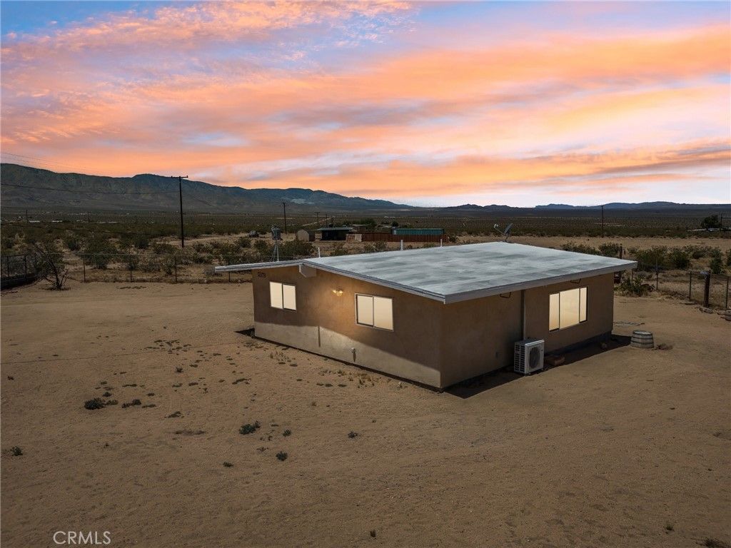 Discover your dream home or investment gem with this charming cabin turned residence. Nestled in desirable Johnson Valley area, this property promises comfort and modern living. Step inside to an inviting open-concept interior finished in crisp white tones, highlighted by stylish canister lighting and durable concrete flooring. Abundant natural light pours in through expansive picture windows, creating a vibrant atmosphere perfect for relaxation or entertaining. The kitchen greets you with simple cabinets, gleaming countertops, and great views. Two serene bedrooms provide a peaceful escape, each equipped with ceiling fans and generous storage. A refreshing shared bathroom features a step-in shower, conveniently accommodating both guests and residents. Additional features are a mini dual heat & air system and RV 3 electric hook-ups. With shopping, dining, Big Bear, Palm Springs, the Airport and Johua National Tree close by, why wait? Not to mention the annual Hammer Race. Outside, enjoy a gated yard with ample space for outdoor activities and gatherings- imagine making s'mores under the stars! Additional features enhance this property's appeal making it must-see. Don't miss out on this opportunity to own a piece of paradise in Johnson Valley.