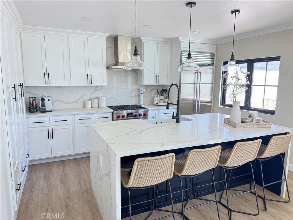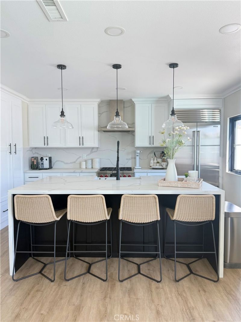 Completely remodeled in 2022, this stunning La Palma home features modern luxury, high-end upgrades, and true turnkey living. The entire property has been thoughtfully renovated, including the interior, front yard, and backyard, creating a seamless blend of style and functionality. Inside, youll find luxury vinyl flooring throughout, complemented by smart home features including smart switches, smart shades, and a smart thermostat paired with a new HVAC system for optimal comfort and efficiency. The home also features Andersen windows, a premium tankless water heater, a newly added water filtration system, a new electrical panel, and a Tesla charger. The chefs kitchen is equipped with top-tier appliances, including a Wolf stove, Sub-Zero refrigerator, and Cove dishwasher. The spacious primary suite features a relaxing retreat with a walk-in closet and a beautifully upgraded bathroom featuring dual sinks, a soaking tub, and a separate walk-in shower. Energy efficiency is a major highlight, with fully paid-off solar panels. Step outside to your private backyard oasis, featuring a fully remodeled pool with convenient mobile app control and a pool heater?perfect for year-round enjoyment and entertaining. Located in a highly desirable La Palma neighborhood, this home is a fully upgraded, modern residence with top-tier amenities inside and out. Seller is Listing Agent