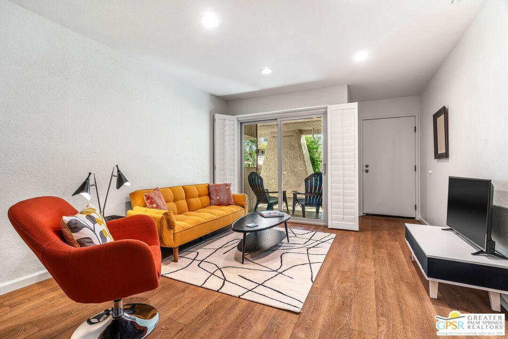Bask in the beauty of desert living in this stylishly updated single-story one-bedroom, one-bath condo showcasing spectacular views of the pool and surrounding mountains. Thoughtfully refreshed with modern finishes, this inviting retreat blends comfort and charm with effortless appeal. Shutters frame the windows throughout, welcoming in natural light while offering privacy when desired. The bright and open living area flows seamlessly to a quaint patio, perfect for morning coffee, sunset cocktails, or simply enjoying the peaceful resort-style setting. The kitchen features sleek countertops, updated appliances, and ample cabinetry, while the spacious bedroom offers a restful escape filled with natural light. The bathroom has been tastefully updated, completing the home's fresh contemporary feel. Set within a beautifully maintained community with pools, lush landscaping, tennis courts, and stunning mountain backdrops, this condo captures the essence of relaxed desert living just minutes from downtown Palm Springs, where shops, restaurants, and entertainment await. Ideal as a full-time residence, vacation getaway, or investment property.