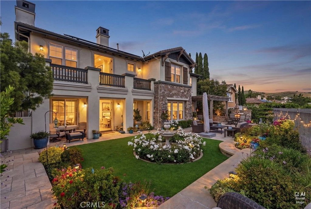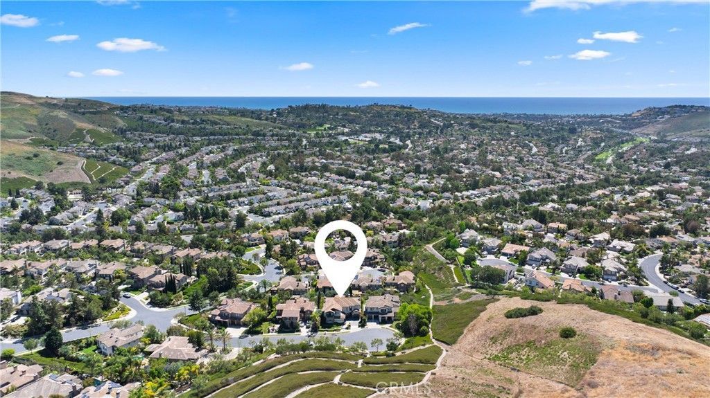 Set on a premium cul-de-sac on a single-loaded street in the highly sought-after San Angelo neighborhood of Forster Highlands, this professionally designed residence offers exceptional privacy with no homes directly across the street. Enjoy panoramic ocean, canyon, hill, and city lights views with a coveted southwest-facing orientation showcasing breathtaking sunsets. Spanning approximately 4,100 square feet, this impeccably upgraded 5-bedroom, 5.5-bathroom home blends luxury, comfort, and timeless coastal elegance?ideal for turnkey living or multigenerational flexibility. A grand two-story entry opens to beautifully curated interiors featuring crown molding, designer lighting, new hardwood flooring, and crisp white tones throughout. Formal living and dining rooms are filled with natural light and enhanced by French doors and a statement fireplace. The gourmet chefs kitchen features quartz slab countertops, custom white cabinetry, a 6-burner range, warming drawer, and a large walk-in pantry. It flows seamlessly into the spacious family room with custom built-ins and fireplace, creating an ideal open-concept great room for everyday living and entertaining. A main-level en-suite bedroom with remodeled bath offers flexibility for guests, extended family, or a private office. A powder room and dedicated laundry room complete the lower level. Upstairs, the luxurious primary suite is a true retreat with a sitting area, fireplace, oversized custom walk-in closet, private balcony with ocean views, and a spa-inspired bath with dual sinks, vanity, soaking tub, and walk-in shower. Three additional bedrooms, including en-suite options and a Jack-and-Jill layout, plus a bonus room or optional sixth bedroom, provide exceptional versatility. Additional highlights include owned solar, dual-zone A/C, water softener, central vacuum, security system, EV charging, custom closets, built-in speakers with Sonos, Ring doorbell, and a desirable split 3-car garage. The resort-style backyard is designed for seamless indoor-outdoor living with a covered loggia, outdoor fireplace, built-in BBQ, and stunning panoramic views. Residents enjoy access to pools, clubhouse, parks, and trails, just minutes from beaches, top-rated schools, and no Mello-Roos.