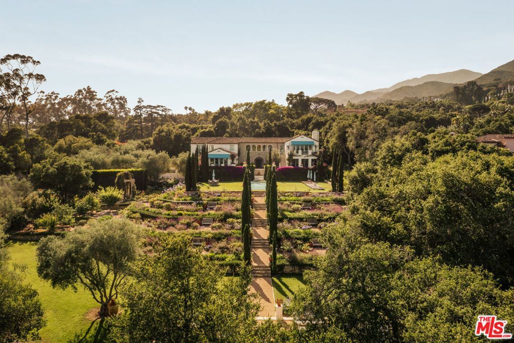 Available for short-term furnished lease to a discerning resident keen on enjoying the Montecito lifestyle in the prestigious Golden Quadrangle. Tucked behind gates on one of Montecito's most coveted streets, this historic estate, originally built in 1930 at the height of the Roaring Twenties, has been masterfully reimagined by renowned architects Sorrell & Sorrell, blending Old World charm with contemporary luxury. Set on approximately 2.2 acres, the property offers unmatched privacy, curated gardens, and panoramic views that stretch from the Santa Ynez Mountains to the Pacific Ocean. This exceptional villa is a short stroll to the Upper Village and the iconic San Ysidro Ranch, with Butterfly Beach, Coast Village, and the Rosewood Miramar just minutes away. Yet it feels worlds apartlike a secluded hillside retreat in the South of France. Beyond the gated entry, a grand motor court welcomes you to a residence that celebrates artisanal craftsmanship and refined elegance. Inside, nearly every room opens to breathtaking vistas or intimate garden moments. The thoughtfully designed floor plan includes five ensuite bedrooms plus dedicated staff quarters, seven luxurious baths, a formal living room, and an elegant dining room ideal for entertaining. A chef's kitchen, outfitted with top-tier appliances and custom cabinetry, flows into multiple gathering spaces including a media room, wine cellar, billiards room, and gym. The primary suite is a true sanctuary, complete with dual spa-like baths, dual dressing rooms, and sweeping views. Outdoors, the estate unfolds into a series of lush garden rooms. Meandering stone pathways connect terraced lawns, rose gardens, fruit orchards, a romantic gazebo, and a charming pond. A sparkling pool and spa are flanked by ocean-facing patios and sun-drenched lounging areas, while hidden corners like the chicken coop and vegetable gardens add soul and self-sufficiency to this one-of-a-kind retreat. Additional features include a six-zone Sonos system, three-car garage, upper and lower gated access, and parking for up to nine additional vehicles. Every element of this estate from its architectural provenance to its serene grounds has been curated to offer a sense of peace, privacy, and place. This is not just a home; it is a legacy property meant to be experienced.