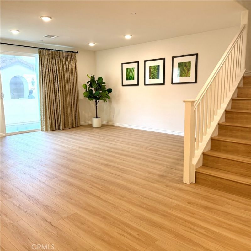 Modern Elegance & Academic Excellence: A Rare 2018 Find, ***New laminate wood floors on down stairs, stair cases, and hallways.*** Discover the perfect blend of contemporary luxury and privacy in this pristine, two-story townhouse. Built in 2018 and meticulously maintained to a like-new standard, this residence offers a rare architectural layout for modern builds. The heart of the home is a designer kitchen featuring crisp white cabinetry, premium granite countertops, and an oversized center island that flows seamlessly into the open-concept living and dining areas. Escape to the expansive master suite, a true sanctuary boasting dual vanities, a deep soaking tub, and a separate glass-enclosed shower. The instant water heating system without the water tank is another modern addition. Tucked away at the quietest rear point of the community, this home is shielded from street noise and includes the rare convenience of additional parking spaces directly adjacent to the unit. Educational Advantage: Located within the Anaheim Union High School District, providing residents the exclusive opportunity to qualify for the nationally-ranked Oxford Academy.