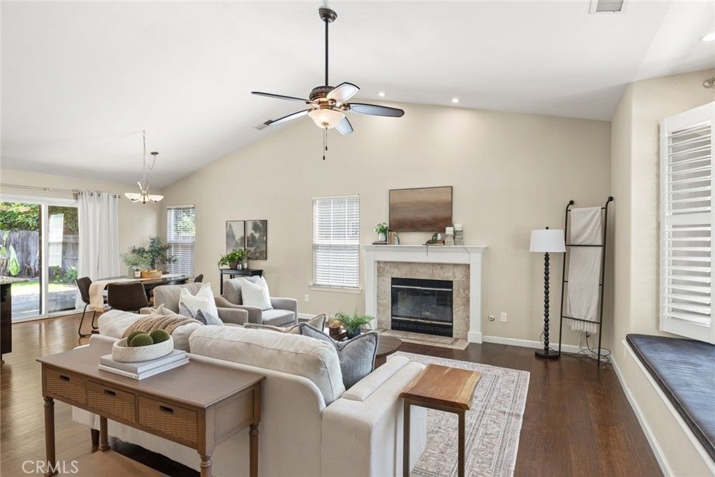 Tucked away at the end of a peaceful cul-de-sac, this beautifully maintained 3-bedroom, 2-bath home offers the perfect blend of comfort, style, and functionality. From the moment you arrive, the attractive landscaping and inviting curb appeal set the tone for whats inside. Step through the front door and into a bright, spacious living room featuring high ceilings, recessed lighting, and a cozy gas fireplace?creating the perfect space to unwind. A charming window seat adds a cozy touch, while wood flooring throughout enhances the homes warmth and character. The open-concept kitchen is designed with both everyday living and entertaining in mind. It showcases a large island with ample seating, sleek granite countertops, stainless steel appliances, a generous stainless sink, and abundant cabinetry for storage. Just off the kitchen, the dining area provides a welcoming space for meals and gatherings. Down the hallway, youll find two well-sized guest bedrooms, each offering plenty of closet space. The guest bathroom includes a tub/shower combination, granite countertops, and updated fixtures for a clean, modern feel. The primary suite is a private retreat filled with natural light, complete with two closets and direct access to the backyard. The en-suite bathroom stands out with dual vanities and an oversized walk-in shower featuring striking large-format tile. Step outside to a spacious backyard designed for relaxation and entertaining. A lush green lawn offers plenty of room for play, BBQs, or soaking up the sun. The large pergola creates a shaded gathering space, while the hot tub adds the perfect finishing touch?ideal for relaxing evenings or hosting friends and family. This move-in-ready home truly has it all?dont miss your opportunity to see it in person!