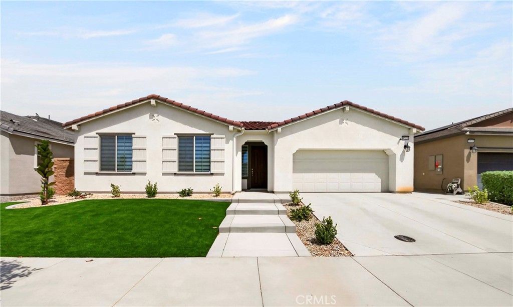 Welcome to this exceptional single-family home in Jurupa Valley! This beautifully maintained single-story home offers 3 bedrooms, a versatile office area, and 2.5 bathrooms, providing flexible living space to suit your needs. The home features a spacious living room with stylish laminate flooring, creating a warm and inviting atmosphere. Laminate flooring extends throughout the living room, kitchen, and hallway, complemented by tile flooring in the bathrooms and the laundry room. The bright and open kitchen is thoughtfully designed with quartz countertops, a modern backsplash, stainless steel appliances, a huge center island, and a walk-in pantry?perfect for both everyday living and entertaining. Enjoy low-maintenance outdoor living with artificial turf in the front yard and extensive backyard cement work completed in 2025?ideal for gatherings and relaxation. This home is equipped with 14 leased solar panels at $161/month through SunPower. Additional features include custom blinds and upgraded recessed lighting throughout the home. Dont miss this great opportunity in Jurupa Valley!